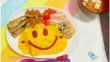 夕食メニューは、スパゲティナポリタン、真アジのソテー、アボカドとトマトのハニーマスタード和え、にんじんと大根とツナのサラダ、コンソメスープ、ゼリー。