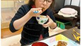 メニューは、ワカメうどん、韓国のり入り卵焼き、きんぴらごぼう、レタスとチキンのサラダ。