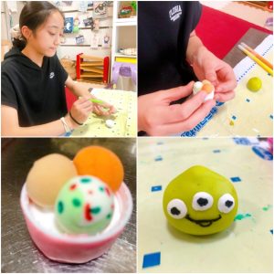 白い粘土にサインペンで色を付けて、、、かわいい31アイスを作っちゃうYちゃん。