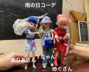 それぞれのリカちゃんの雨の日コーデについて工夫したポイントとかアピールしたいポイントとかを説明。