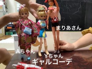 まりあさんが来てくれたので、Yちゃん、まりあさん、めぐさんでリカちゃんのファッションショーをすることに。