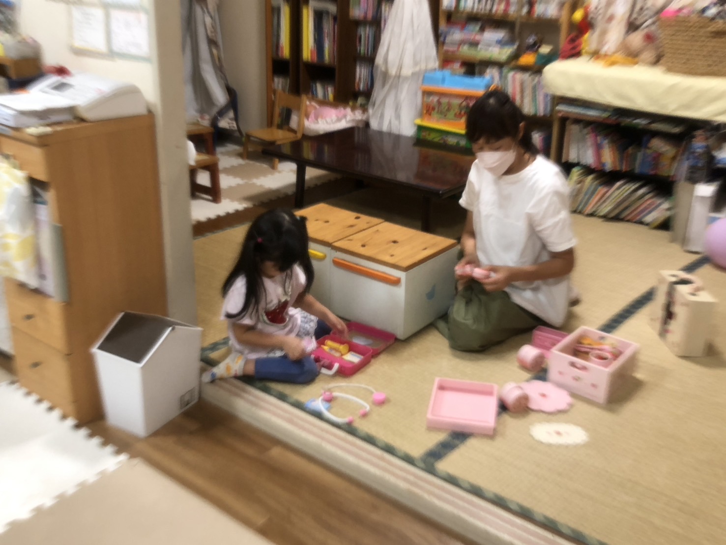 夕食までは、ふみさんといちごカフェやお医者さんごっこで遊びました。