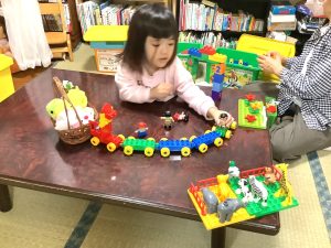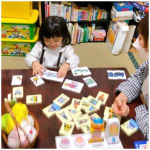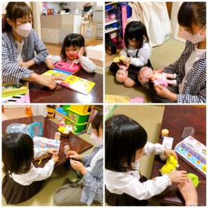 Nちゃん、キティちゃんのお店屋さんごっこ、メルちゃん、アンパンマンのアイス屋さんごっこ、絵合わせのカードなど、