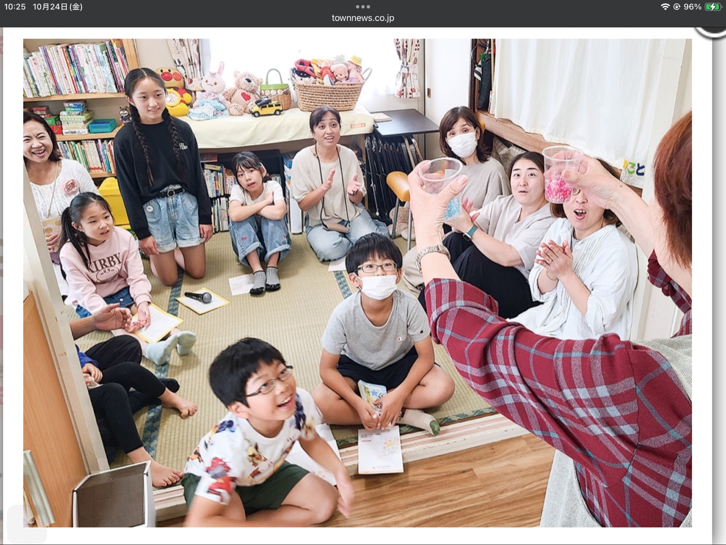 記事の写真、大和先生のマジックショーの写真で、みんなの笑顔、驚きの顔、、楽しい場面をとらえてくれていました。