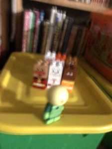 写真がぶれてしまいましたが、アンパンマンの仲間を並べて、幼稚園ごっこ。