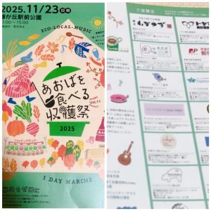 11月23日(日)、勤労感謝の日は、毎年恒例の「あおばを食べる収穫祭 2025」が、藤が丘駅前公園で開催されました。