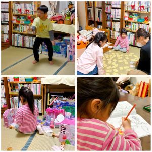 夕食前には、5歳のYちゃんが保育園から、5年生のAちゃんも塾から戻って、みんな自由に遊んでいます。