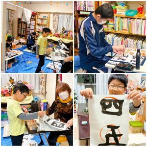 そして午後4時からは、書道教室の大和先生、2年生のRくん、中学2年生のAくんも揃って、お稽古スタート。