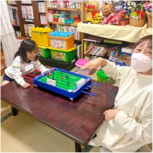 Nちゃん、この日の遊びは、サッカーゲームから。