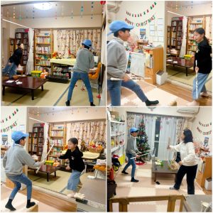 CくんとAちゃんは、立体四目で対戦したり、野球したり、チャンバラしたり、、、どんどん盛り上がって、、、