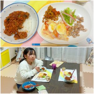 Sちゃんも好きなキーマカレー。もちろん揚げ大豆も。