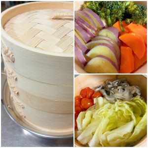 せいろが届いたので、野菜たっぷりのせいろ蒸しを作りました。