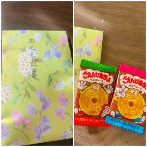 中には、ごえんがあるよという、五円玉チョコが2つ入っていました。