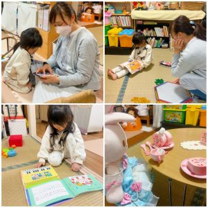 ピアノ絵本で、ピアノを弾いたり、、、いちごカフェで遊んだり、