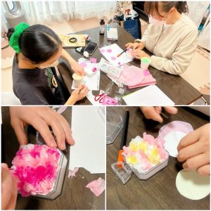 ハンドメイドが大好きな2人、お花紙の色選びをしたり、とっても楽しそうに作っていましたよ。