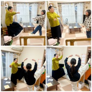 AちゃんとSちゃんが、それぞれ、バレエとピップホップダンスをまりあさんに教えて、