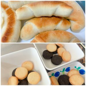 おやつは、塩バターロール、まりあさんに頂いたクッキーでした。