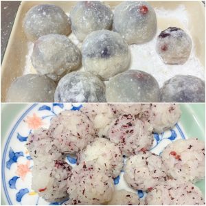 おやつは、いちご大福とゆかりおむすびでした。