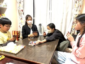 夕食後、3人とふみさん、めぐさんでUNOをやりました。
