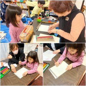 Aくんのこともチラチラ見ていましたよ。毛筆、、、なんだろうって、興味持ってくれたのかな?